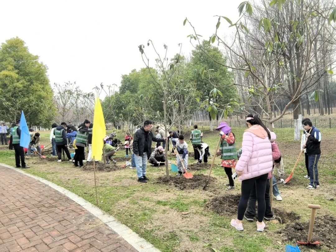 区园林局在府河郊野公园开展“履行植树义务,共建绿色家园”植树活动。市民在园林工人指导下种植了100株樱花树苗和30株枇杷树苗,共同为绿色江岸建设贡献力量。
