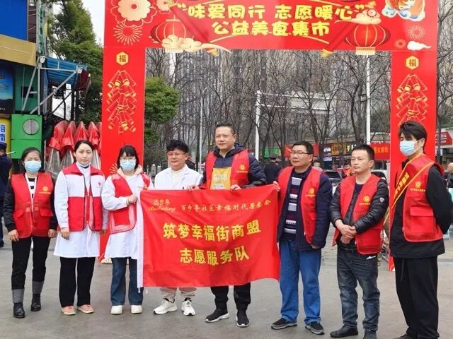 百步亭社区举办公益美食集市活动,商户支起美食摊位,志愿者协助制作美食并引导居民免费品尝,现场提供健康义诊、义务理发等公益服务,为“筑梦幸福街商盟”志愿服务队授旗。活动结束后,商户代表把美食送到独居老人家中,传递温暖。