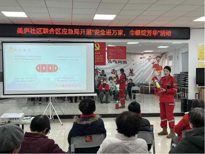 区应急管理局联合后湖街道美庐社区开展“安全进万家,巾帼绽芳华”应急科普活动,宝捷应急救援队为妇女群众讲解灭火器使用、逃生技巧及海姆立克急救法,提升其消防安全意识和应急处置能力。