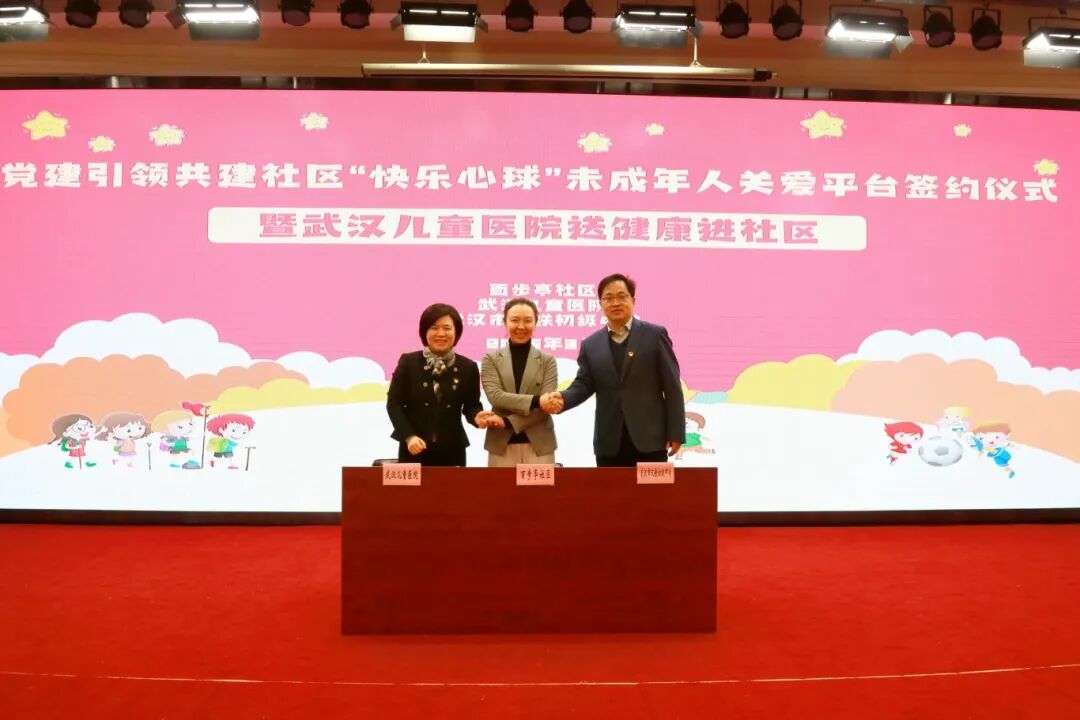 为加强经验交流、资源共享,构建“家校社医”协同育人机制,保障未成年人身心健康,近日,江岸区百步亭社区携手武汉儿童医院、武汉市汉铁初级中学,开展“党建引领 共建‘快乐心球’未成年人关爱平台签约仪式”,共同搭建“社区统筹+医疗支持+学校教育+家庭参与”“四位一体”的关爱模式。
