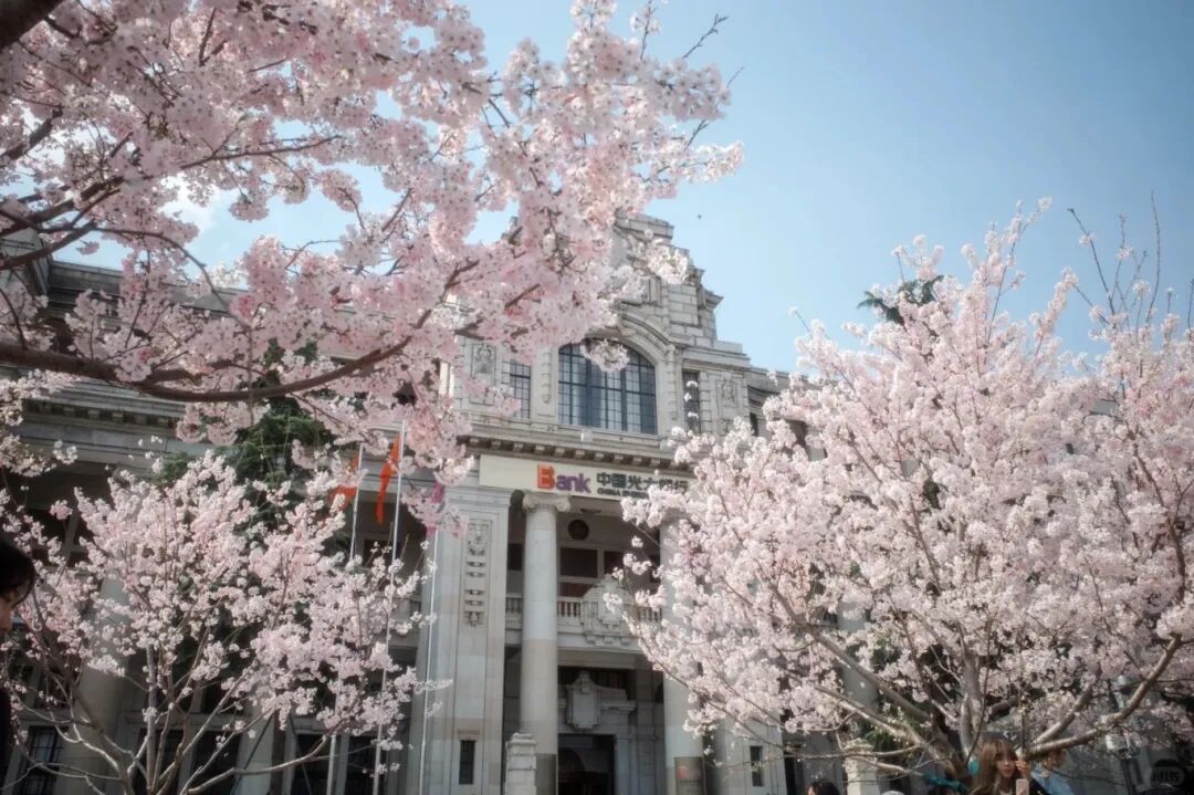 江岸沿江大道——中山大道赛道两侧樱花纷纷探头,邀请每一位“江湖好汉”尽情享受这场春日限定粉黛。