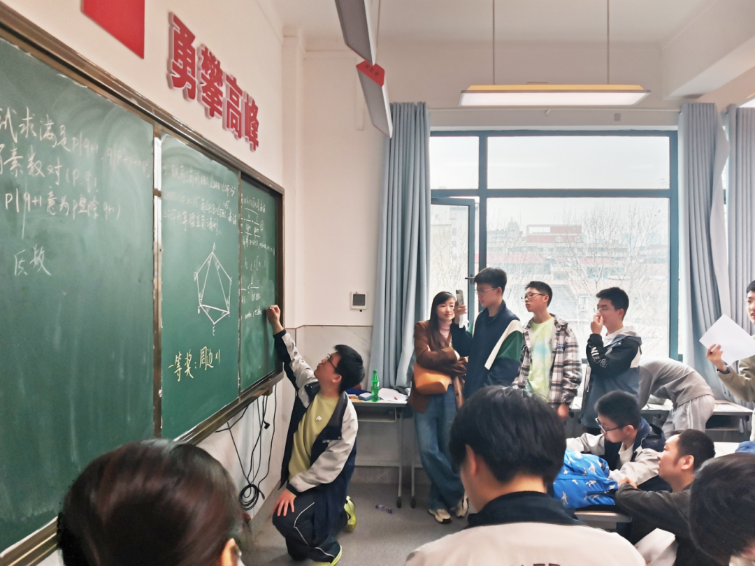 作为全国五大学科竞赛“金牌大户”,二中竞赛部的数学教室成为开放日最火爆的打卡点。高二数学竞赛组学生现场演示一道组合数学题的解题过程,学生和家长惊叹不已,现场响起一片掌声。