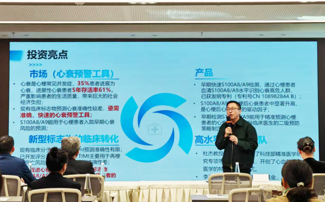 该公司负责人自豪地说,试剂盒的预测准确性从现有标志物的67%提升至近90%,已与武汉多家医院展开合作,即将进入临床阶段,有望于今年上市。路演企业代表逐一登场,围绕技术壁垒、市场前景、融资需求展开推介,多家项目凭借创新技术及产业化潜力引发投资机构高度关注。