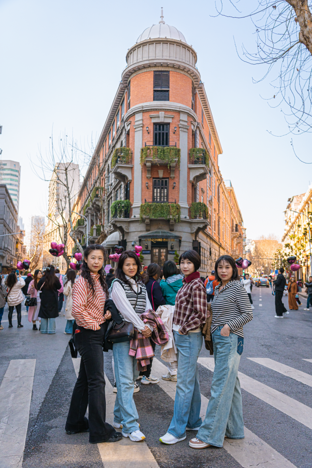 在武汉天地,一群打扮时髦的四川嬢嬢们分享了她们的春日时尚穿搭。
