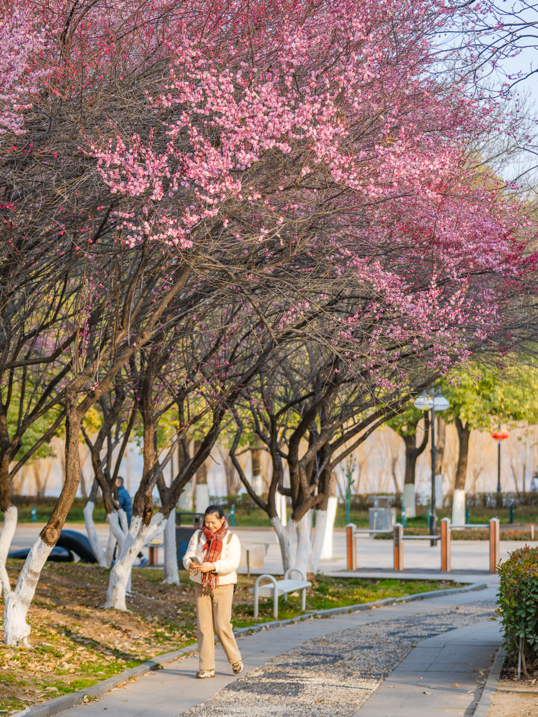 他们的春日赏花之旅从沿江大道樱花广场开始,先欣赏完烂漫的樱花,然后漫步至汉口江滩,感受江风的轻抚与春日暖阳。