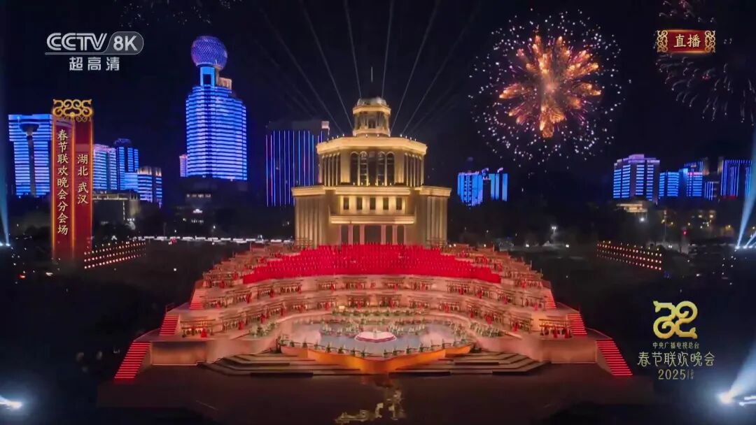 2025年蛇年春晚武汉分会场,作为三大主舞台之一的横渡长江博物馆全力保障春晚舞台搭建和综合服务保障工作。其通过灯光造型、节目表演和城市精神三个方面,将长江自然景观和武汉城市风貌深度融合,在春晚上惊艳亮相,成功“出圈”。