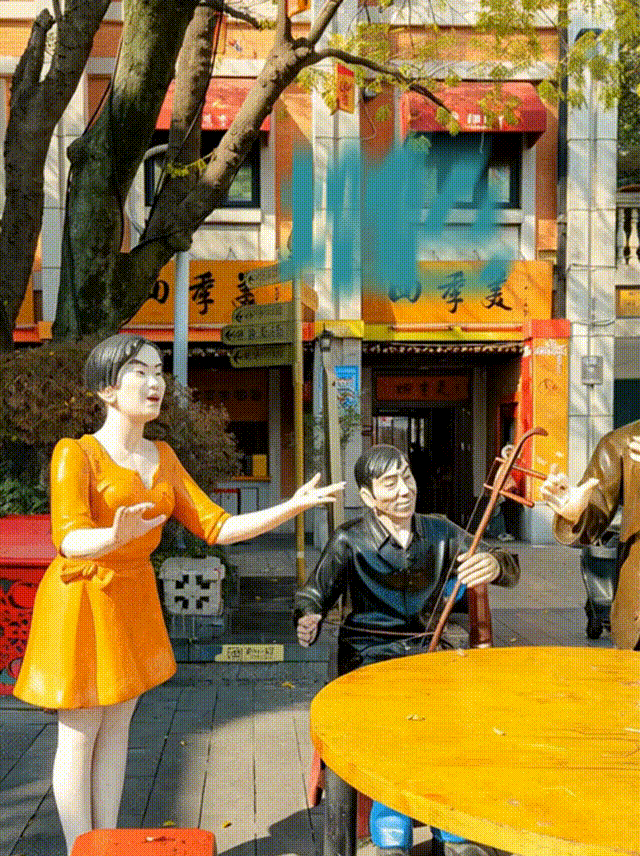 驻足吉庆民俗街街角的休息处,定睛观赏这些民间艺人雕塑,感受老汉口独有的风情。