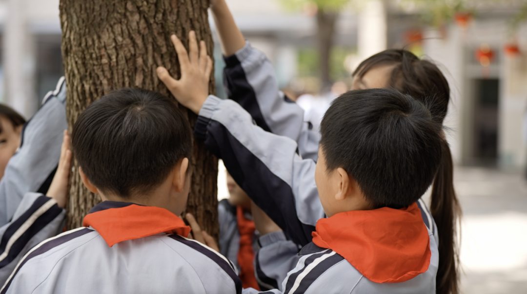 在操场的树荫下,学生们开始“自然冥想”,通过轻轻触摸树干的纹理,感受树木的坚韧。闭上双眼,专注聆听春风拂过树叶的沙沙声,品味一曲美妙的自然乐章。
