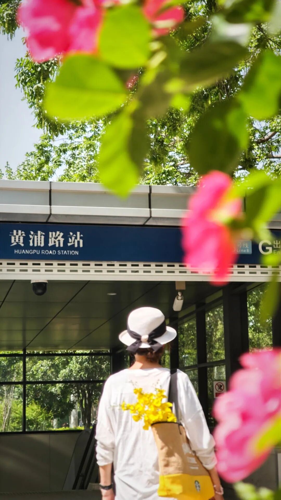 “一架长条万朵春,嫩红深绿小窠匀。”当你从黄浦路地铁站G口出站后抬头,便能与古诗词里的春天撞个满怀。