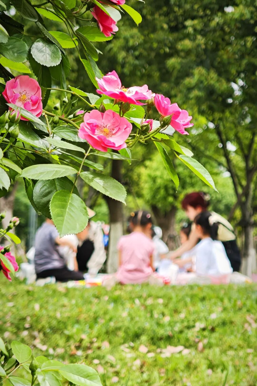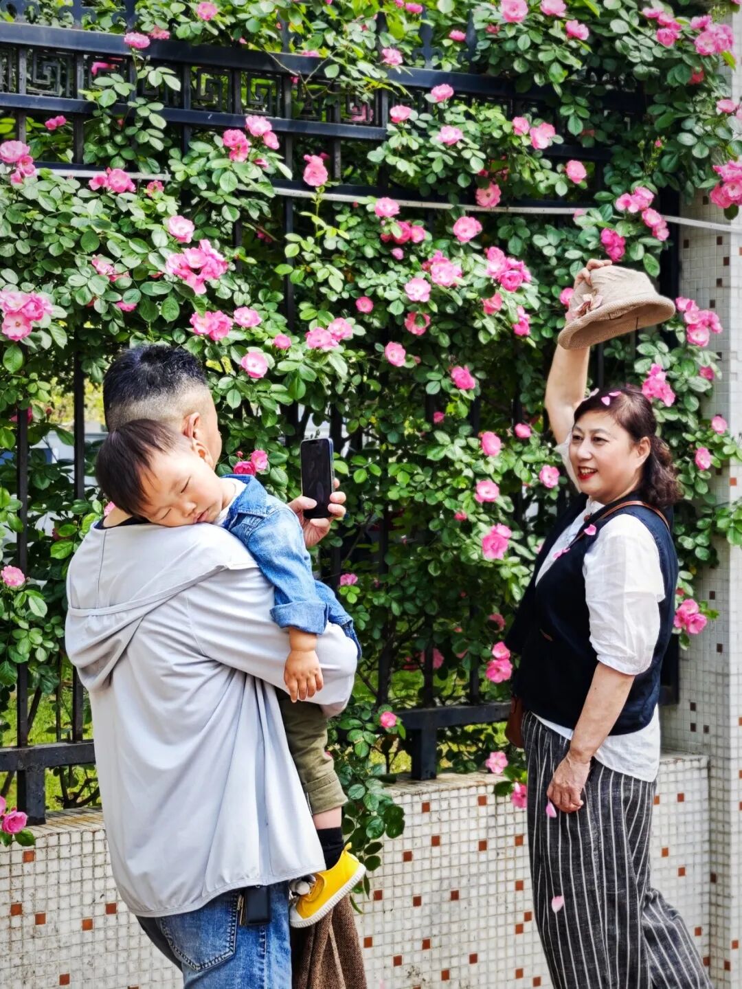 春日的阳光正好,颐湖公园的蔷薇开得热闹。