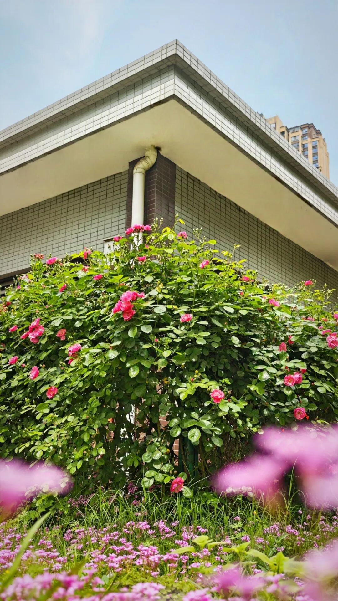 行至兴业路与文博路,忽见蔷薇满架,盛放无拘。花朵在晚风里轻轻摇曳,像是特意为归人铺就的一段温柔路途。
