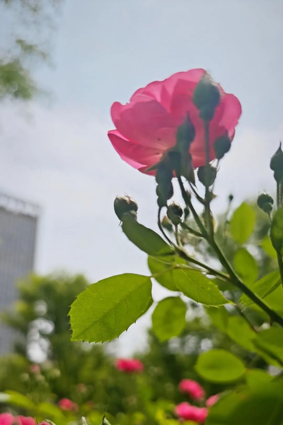 每次路过金桥永旺前那片蔷薇,总会留心围栏上,那一朵朵含苞待放的骨朵什么时候迎风而开。