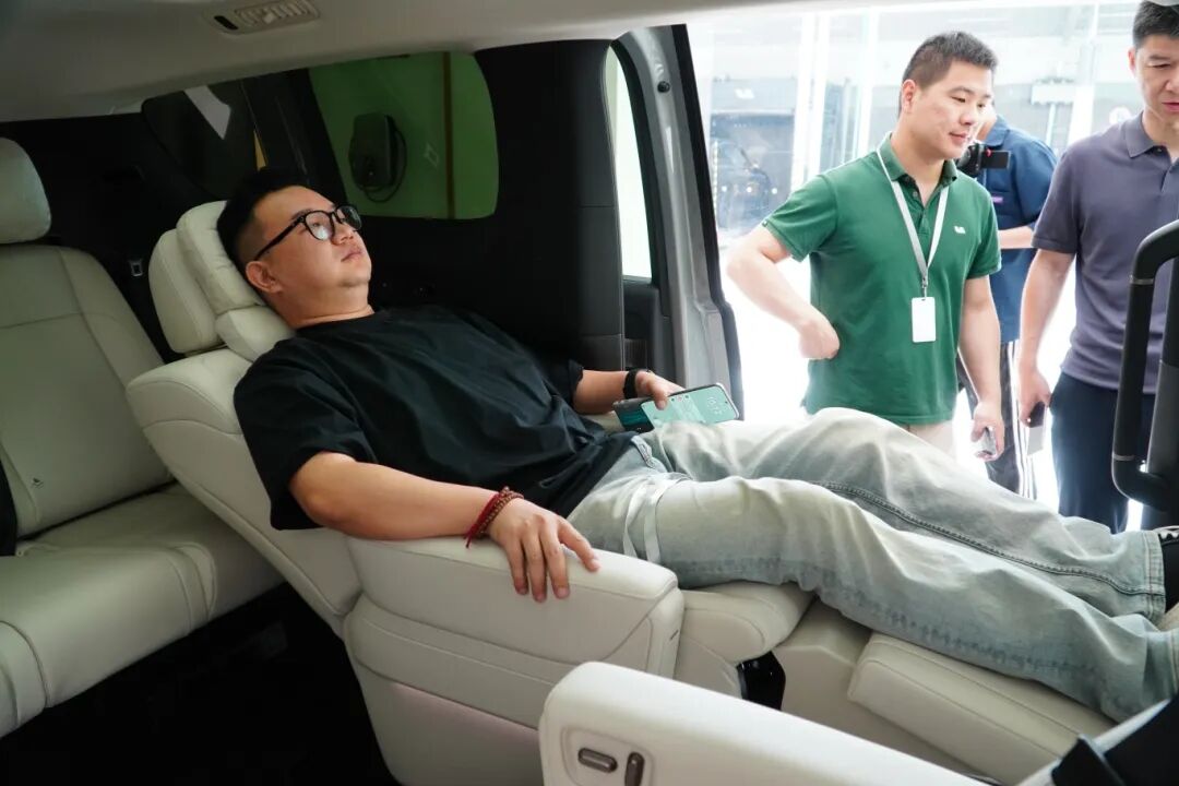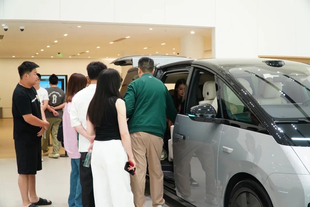 当天,零售中心内外布置充满科技感与家庭温馨氛围,用户们围聚在展车旁,亲身体验二排零重力旋转座椅的灵活多变。一位携全家到场的用户表示:“座椅旋转后形成的‘对坐大客厅’模式,让孩子和老人能面对面交流,甚至还能办公、打掼蛋,幸福感直接拉满!”。