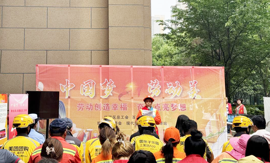区总工会联合百步亭现代城社区开展“中国梦·劳动美”欢度“五一”活动,通过沉浸式宣讲、互动教学、技能比拼等形式,为快递员、外卖员、环卫工等新就业群体送上节日关怀。活动还提供义剪、安全培训、劳动咨询等服务,增强劳动者幸福感和归属感。