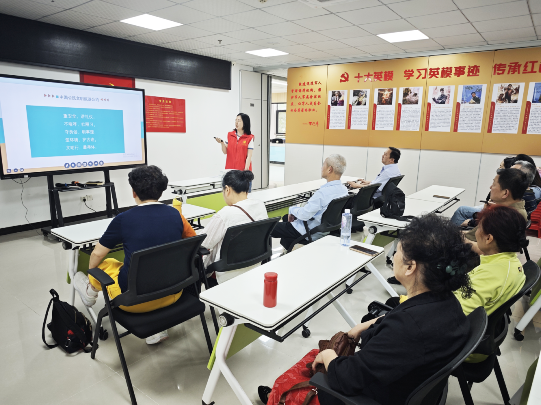 区委宣传部组织四唯街道五福社区新时代文明实践站开展“文明旅游 你我同行”社区行活动。现场用寓教于乐的方式为群众讲述文明旅游相关知识,呼吁居民共同将文明旅游从公约条文转化为街头巷尾的暖心场景。