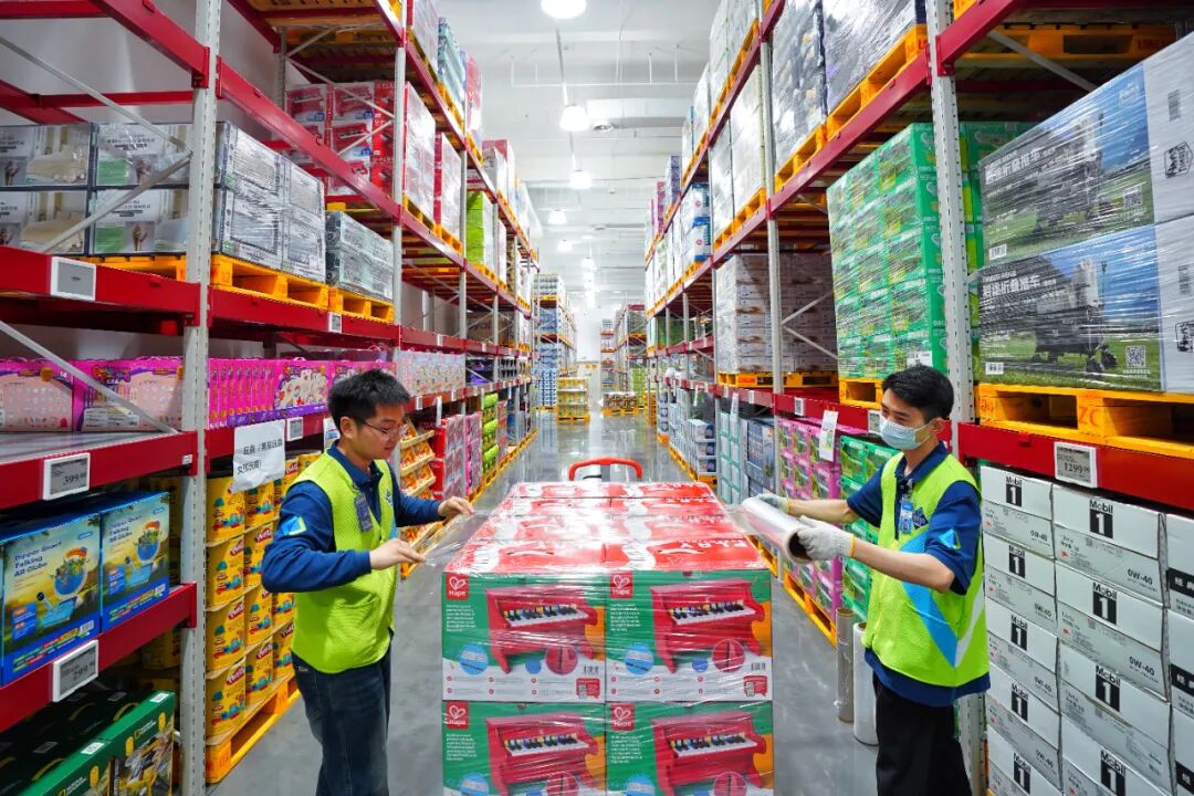 山姆会员商店江岸店内,工作人员提前上架部分商品
