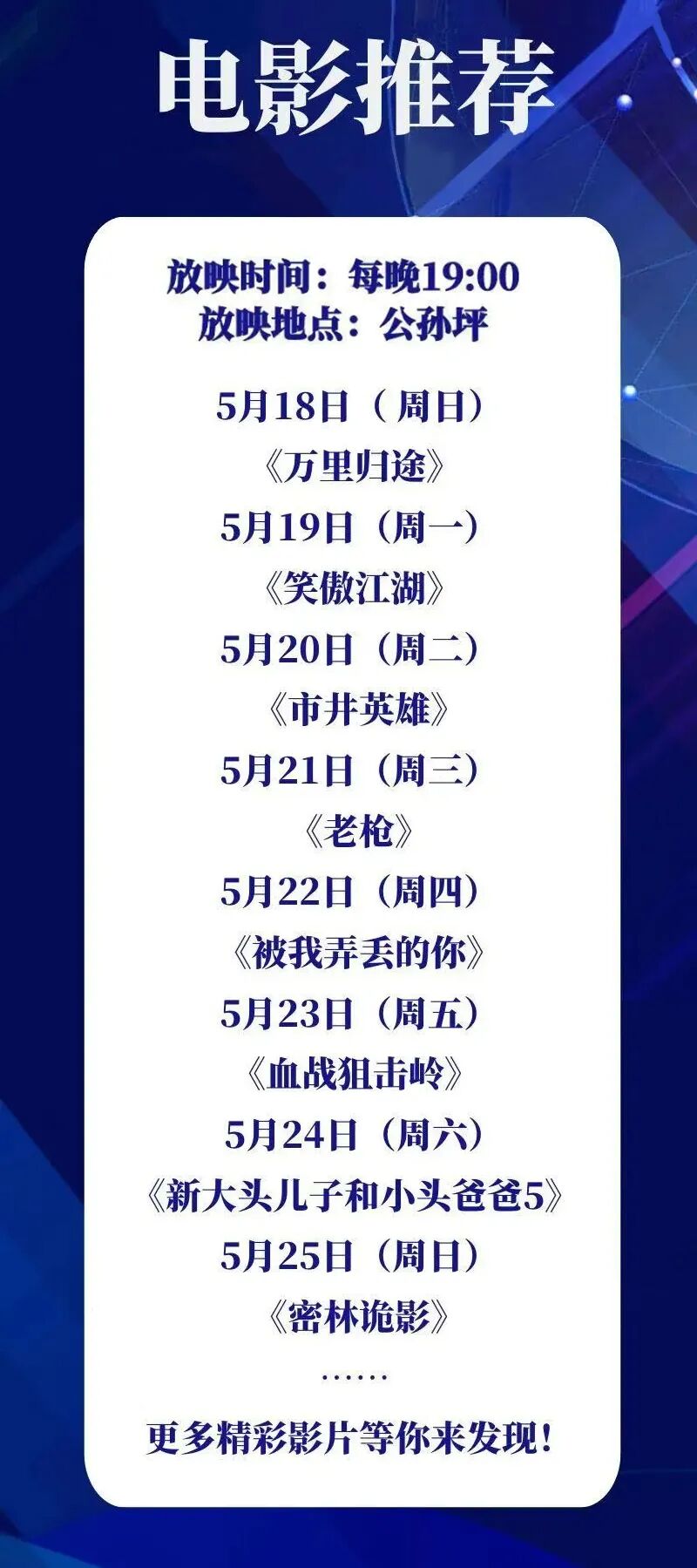 初夏来临,解放公园又一次化身城市露天影院,5月16日(周五)起,每晚19:00,解放公园公孙坪(近2号门)将支起大型幕布,邀您卸下白日暑气,在晚风、星光与草木清香中,感受一场场电影盛宴!