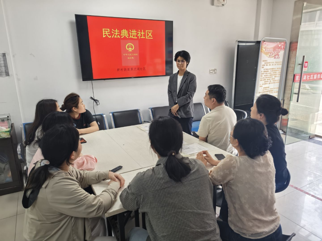 新村街道黑泥湖社区妇联开展“‘典’亮生活,法护社区——《民法典》进社区”宣传讲座活动,通过具体案例分析,让居民了解如何正确维护自身合法权益。