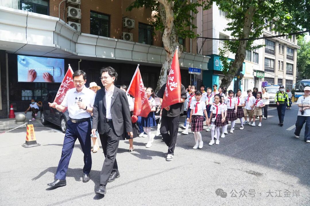 “听了陆鸣老师说路名,我们都想实地去看看。”启动仪式后,“江岸之光”全区中小学校百场主题班会首场在孩子们的期待中开启,参与活动的师生代表与嘉宾从纪念馆出发,沿胜利街实地探访郝梦龄路、张自忠路、陈怀民路等“英雄路”。