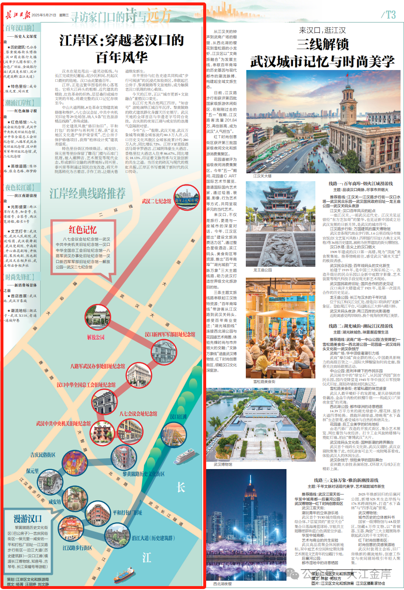 今年“五一”假期,武汉天地、武汉万象城等商圈全域客流约80.3万人次,汉口历史文化风貌区全域客流累计约280万人次,同比增长72%。江岸3家星级酒店马哥孛罗酒店、江城明珠豪生大酒店、香格里拉大酒店入住率86.67%,同比增长18.13%,印证着文脉传承与文旅创新的共生之道。当历史的砖瓦与现代的霓虹共振,江岸正书写着属于新时代的汉口传奇。