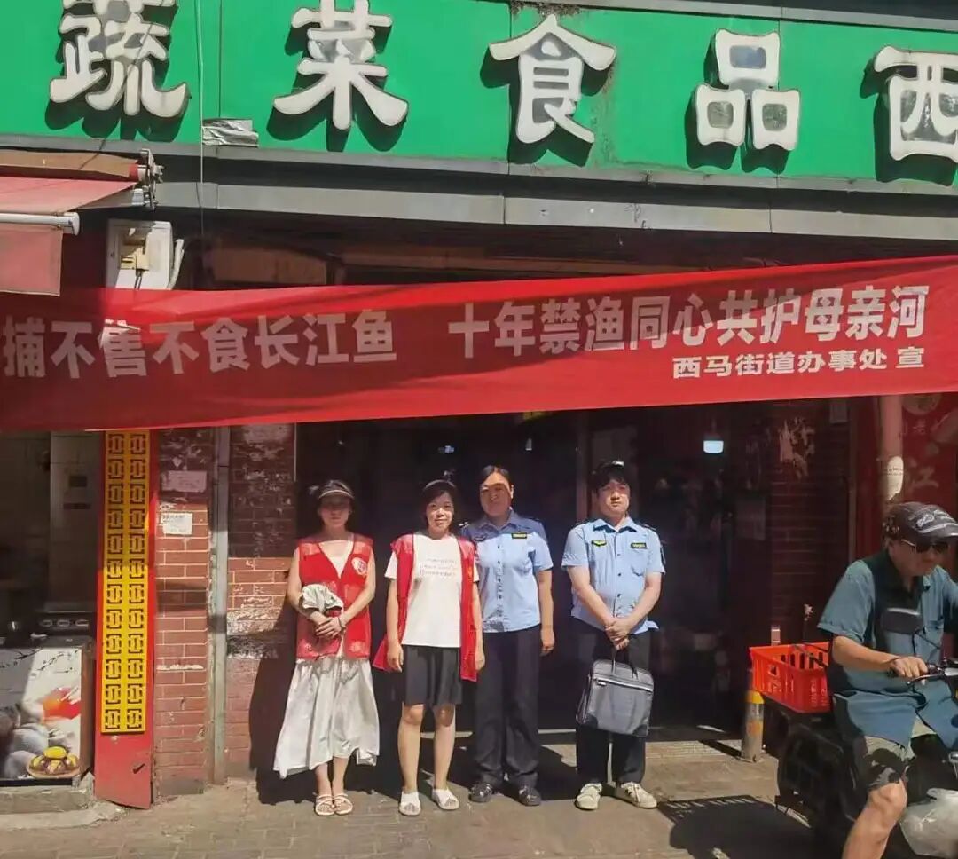 西马街道市场监督管理所开展长江禁捕专项执法检查行动,以农贸市场、商超、餐饮单位为重点,通过现场查验、台账核对等,严查销售、加工、食用长江流域非法捕捞渔获物等违法行为,并向经营者及消费者普及《中华人民共和国长江保护法》及禁捕政策,引导商户自觉守法,共同守护长江生态。