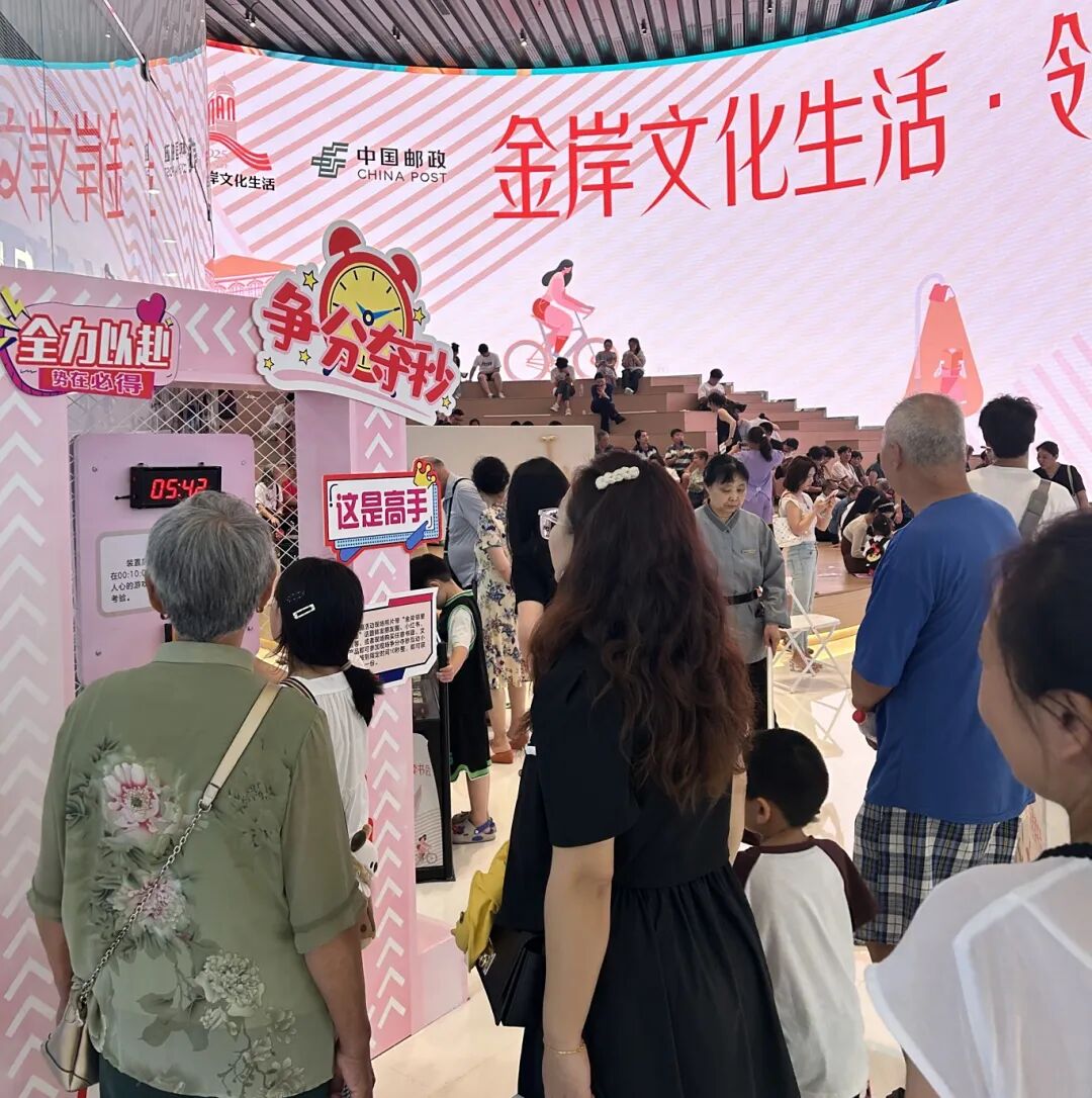 “创艺新生”邮政文创展上,蒜鸟系列、邮政系列、主题明信片等精彩亮相,吸引了不少市民驻足欣赏,大家在文创产品中品味着方寸之间的美好。图书漂流站也备受欢迎,拿你的旧书换我的故事,让知识在流转中传递。“争分夺秒”解压互动体验环节也人气颇高,现场欢声笑语不断。