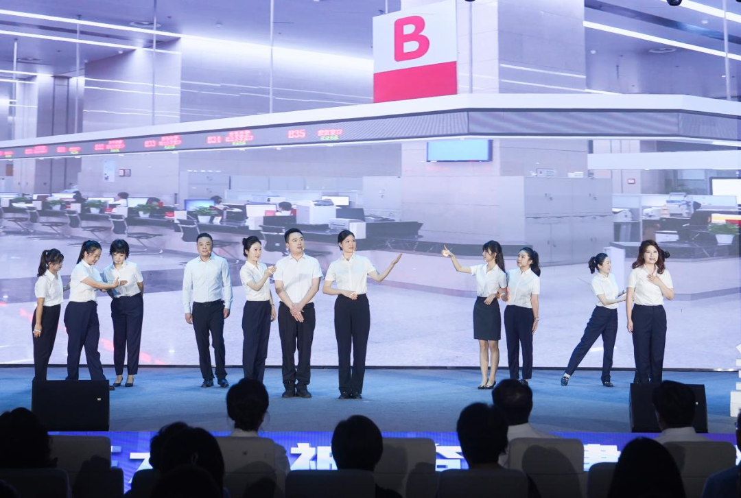 报告会上的情景演绎环节展示企业办事从原来“跑窗口”到如今“掌上办”。