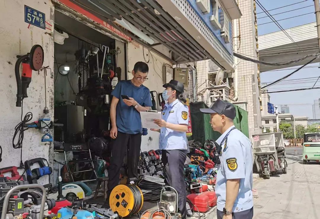 在汇通路,街道布设的公共摄像头与商户自用的安防设备,共同构成了全天候在岗的“电子哨兵”网络。这些设备通过物联网技术接入综合执法管理平台,执法人员可随时调取查看商户规范经营情况。一旦系统识别或人工检查发现违规行为,平台能立即向商户发送短信提醒,实现即时预警和远程纠偏。