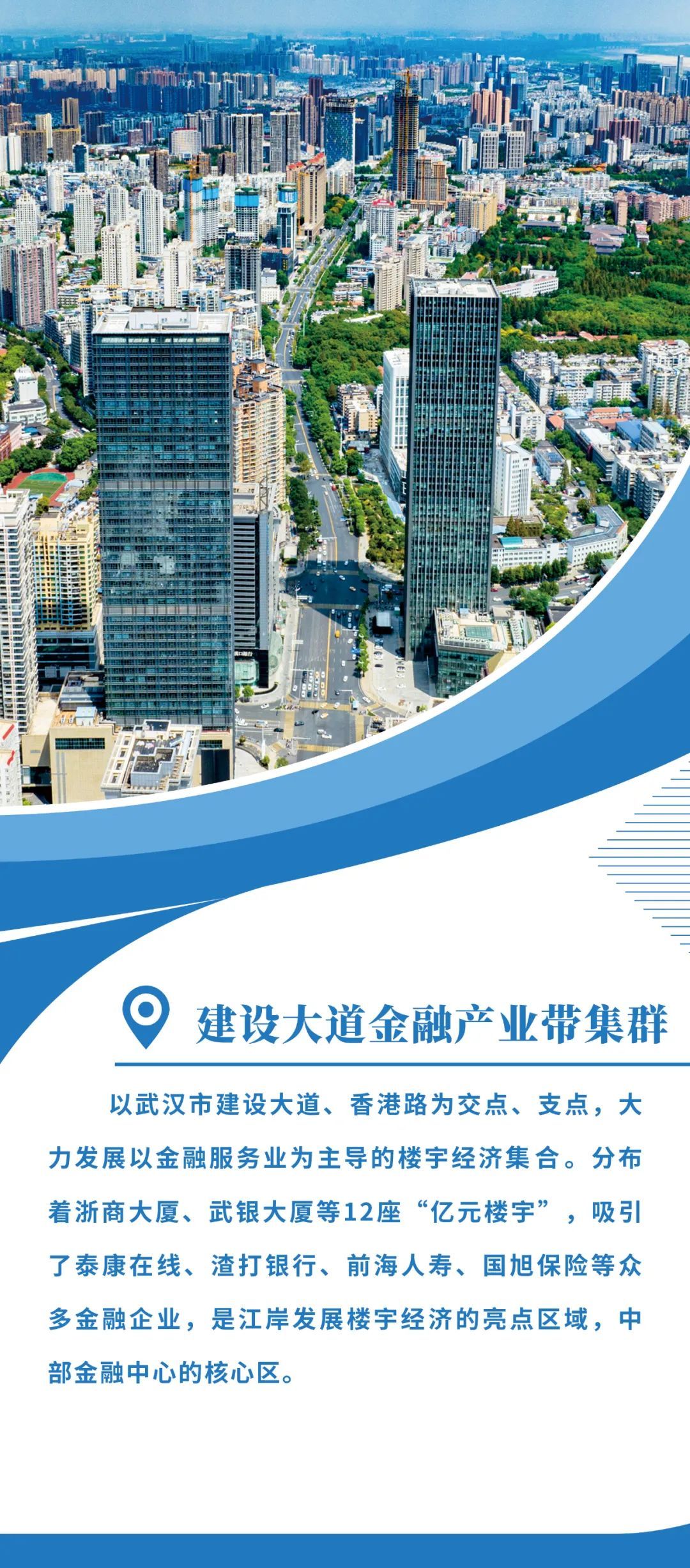 “十四五”以来,江岸区围绕大力发展楼宇经济,重点推进高端楼宇打造、特色楼宇培育、智慧楼宇建设、老旧楼宇焕新、亩均效益提升“五大工程”,楼宇经济总量和质量持续提升。截至目前,已有纳税超10亿元楼宇3栋、纳税超亿元楼宇25栋,泰康金融中心、新希望华中总部等11栋商务楼宇正在加速生长。