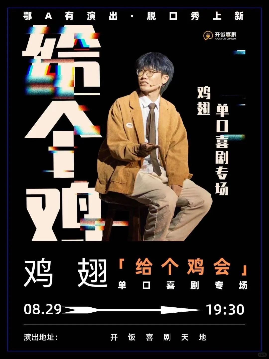 从初出茅庐的喜剧新人,到如今脱口秀界的中流砥柱,脱口秀演员鸡翅用一个个幽默段子书写着自己的喜剧之路。他的单口喜剧专场《给个鸡会》,将由主持吖龙和开场嘉宾大Z一同登场,为这场喜剧盛宴添彩。