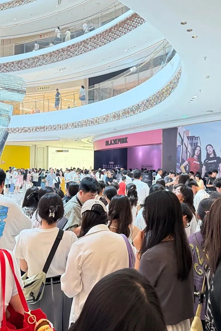 近日,武汉万象城BlackPink快闪空间外排起长龙。