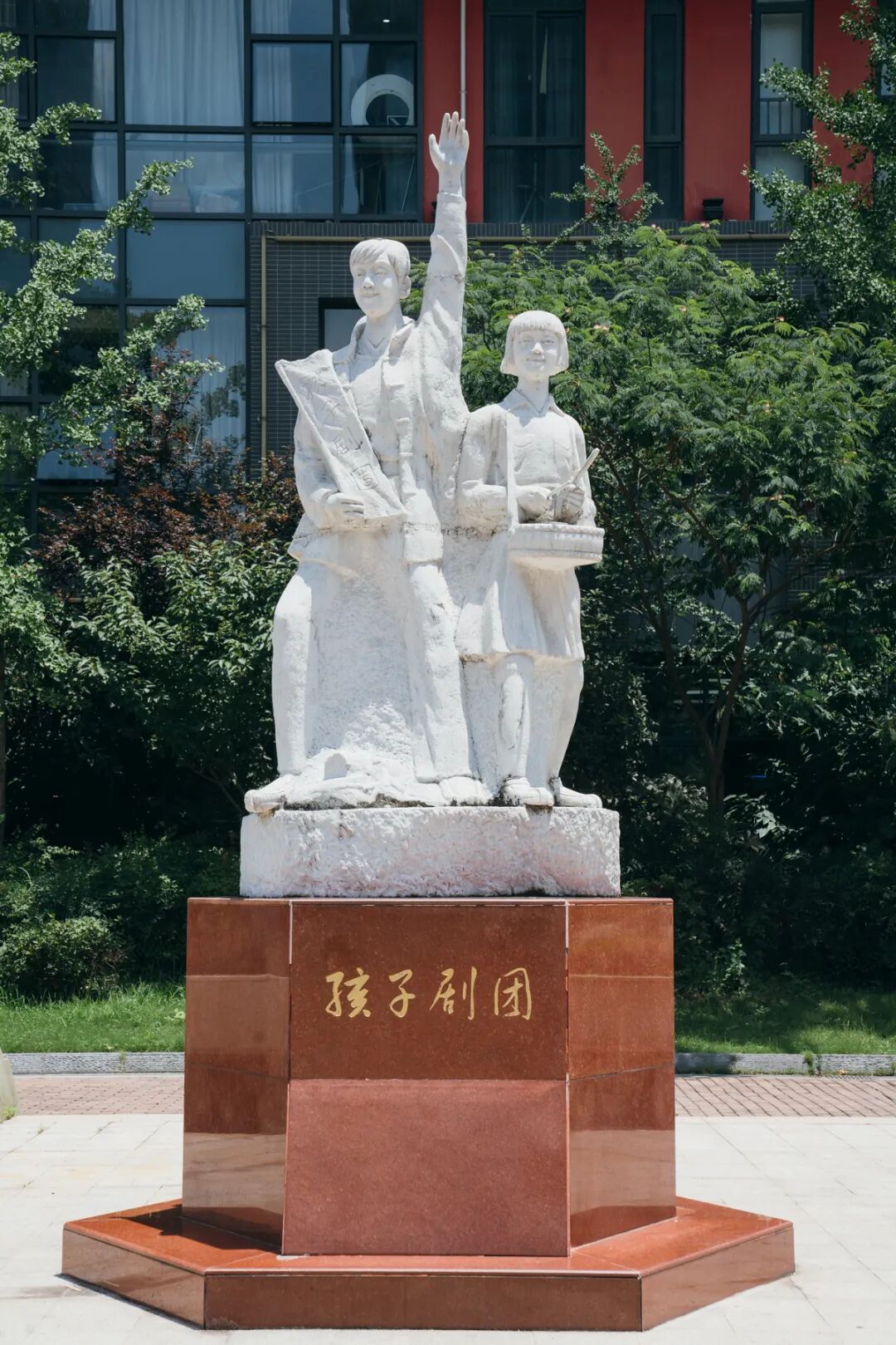 长春街小学对孩子剧团历史的传承由来已久。校园里最醒目的雕塑,便是1989年由著名雕塑家谢家生创作的孩子剧团汉白玉群雕,艺术地展现了孩子剧团以歌咏、舞蹈、戏剧为武器,开展抗日宣传活动的历史画面。雕塑旁的花坛也以汉白玉浮雕围绕,浓缩了孩子剧团始于上海、兴于武汉、归于延安的抗战史。校园里还建有孩子剧团陈列馆,以丰富图片和实物资料详细介绍了孩子剧团的历史。
