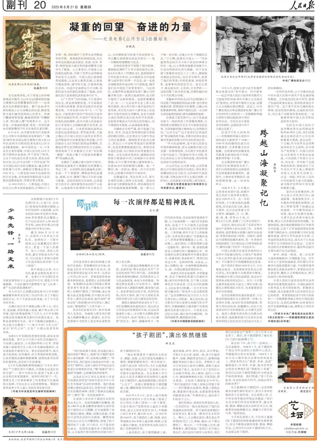 在儿童剧《孩子剧团》中,这首团歌被身穿破烂褂衫的孩子,和当今身穿校服的孩子反复吟唱。在长春街小学,几乎所有同学都会哼唱这首歌曲。“我们生活在他们所向往的新世界,通过戏剧、歌曲、舞蹈这些生动的艺术方式,能够更深刻地理解历史,理解今天和平的可贵。”赵欣悦说。