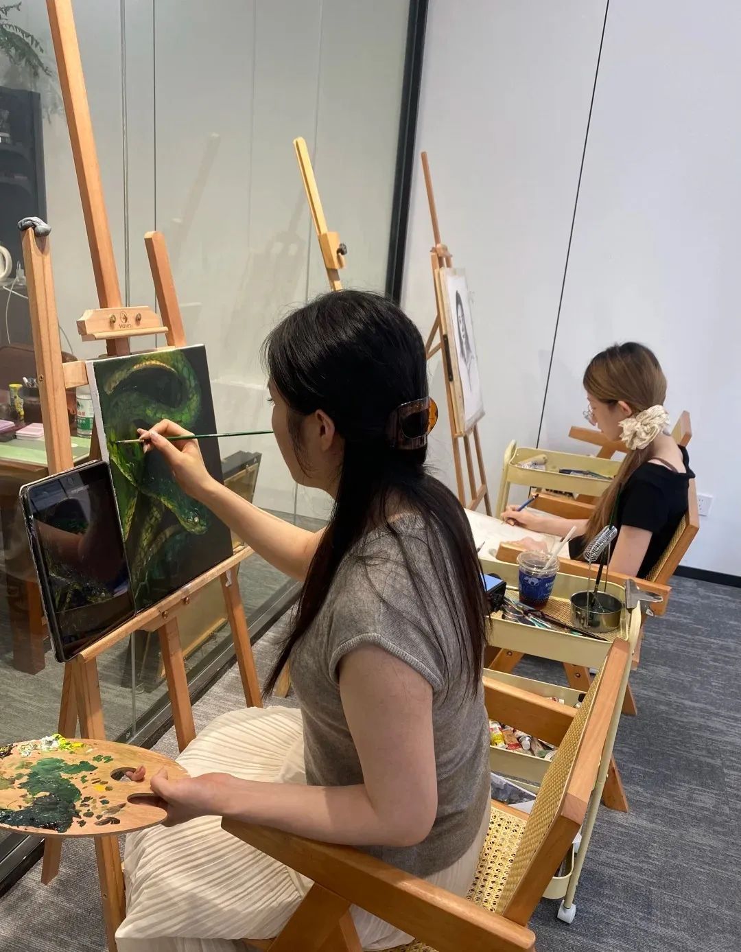 在成人画室里,人们用绘画完成一场无声的情绪疗愈。挥动画笔时,注意力完全沉浸在颜料的选择与调和中。蘸取一抹喜欢的亮色,把对生活的感知通过画作呈现出来。