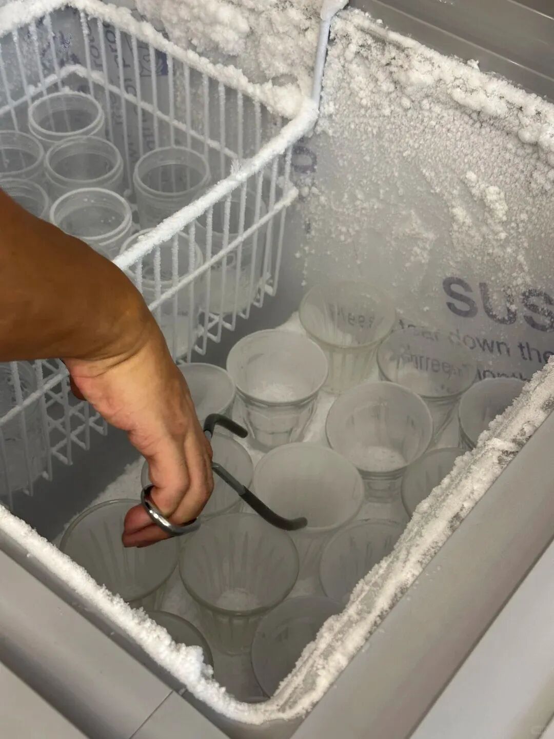 武汉天地的Walking Bass Coffee、延庆里的LoopLoop Coffee的冷冻柜里整齐地码放着等待“上岗”的冰杯。