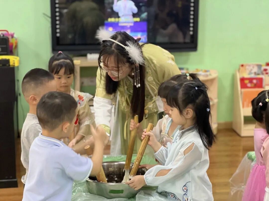 ■ 张霞老师和孩子们一起“打糍粑”