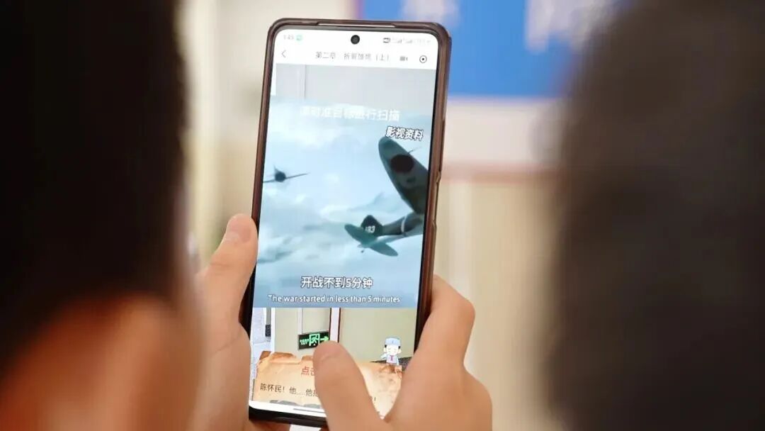 AR识别功能也让英雄故事“活”了过来,对准场馆内的实景或图片线索点击识别,一个个感人至深的英雄故事便展现在眼前,青少年们仿佛穿越时空与先辈对话,感受他们的热血豪情。