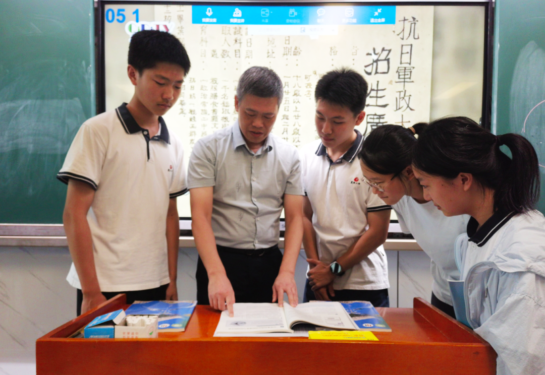 “教育是静待花开的艺术”,这是陈老师一直坚守的信念。面对性格多元的学生,他从不用“一刀切”的标准要求。一句切中要害的点拨、一次作业本上的真诚点赞、一场敞开心扉的长谈,像投入心湖的石子,激起学生自我完善的涟漪。他将红色基因融入日常点滴,把家国情怀种进学生心田,潜移默化中厚植爱国情怀。