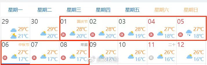 根据气象部门信息,双节期间我市整体以多云为主,其中10月5日可能有降雨,气温保持在17至28℃,天气较为凉爽,适合出行游玩。