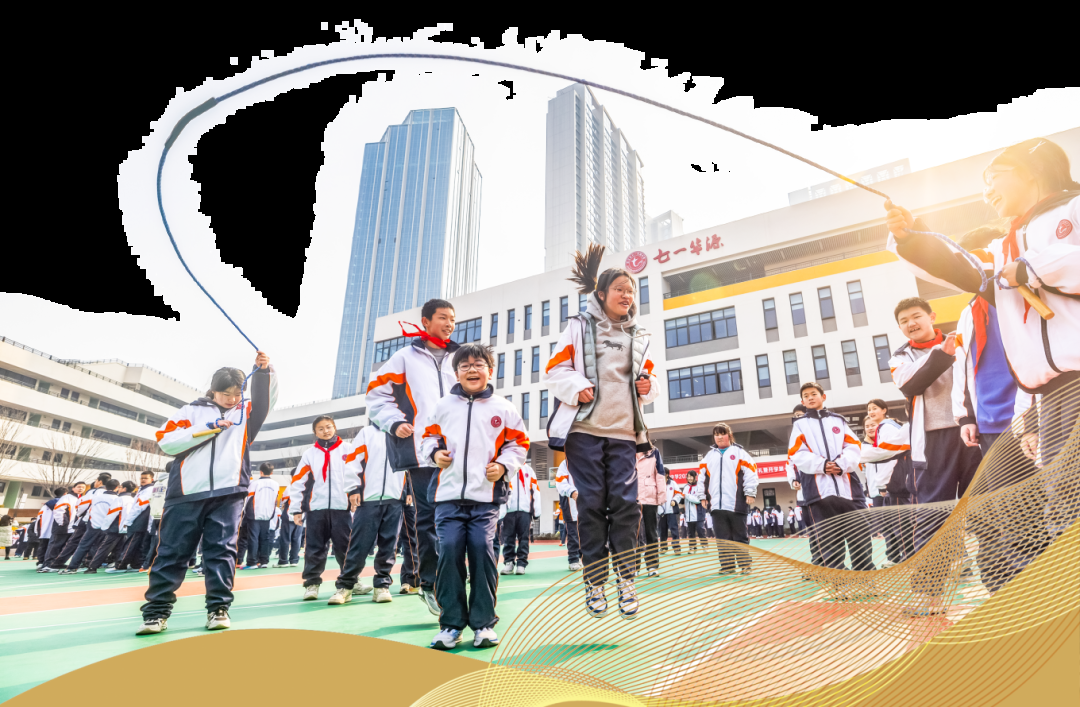 而江岸区推出的“大课间十大运动套餐”则从身体出发,指向心灵。“绳”彩飞扬(跳绳)、遇“毽”快乐(踢毽)、“篮”爆全场(篮球)、“足”梦未来(足球)等活动不仅保证江岸区学生“每天综合体育活动时间不低于2小时”,更帮助他们在运动中释放压力、在协作中建立归属感。