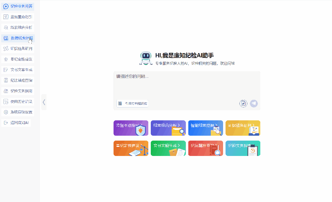 武汉格事化信息技术有限公司的“廉知纪检大模型及监督执纪AI智能体”,集成纪检业务问答、监督重点指引、线索综合分析等常见监督执纪场景的智能体应用。具备较高的纪检专业程度,可单机脱网运行与互联网物理隔绝,可在局域网内作为小型服务器供多人使用等优势。