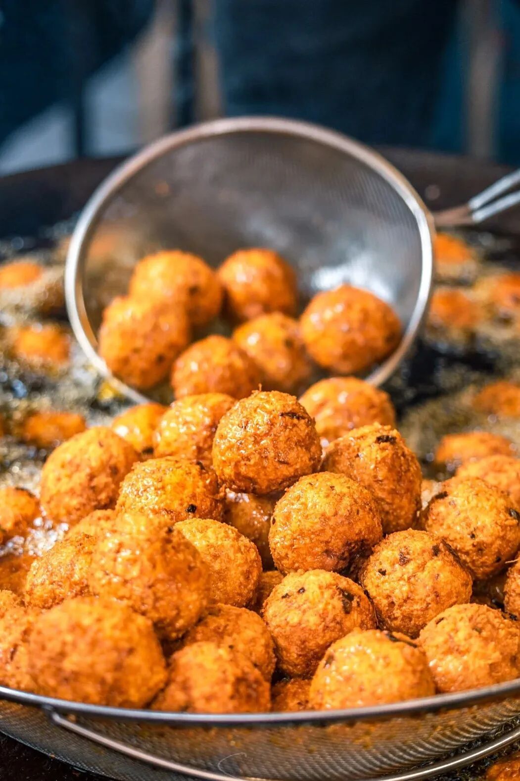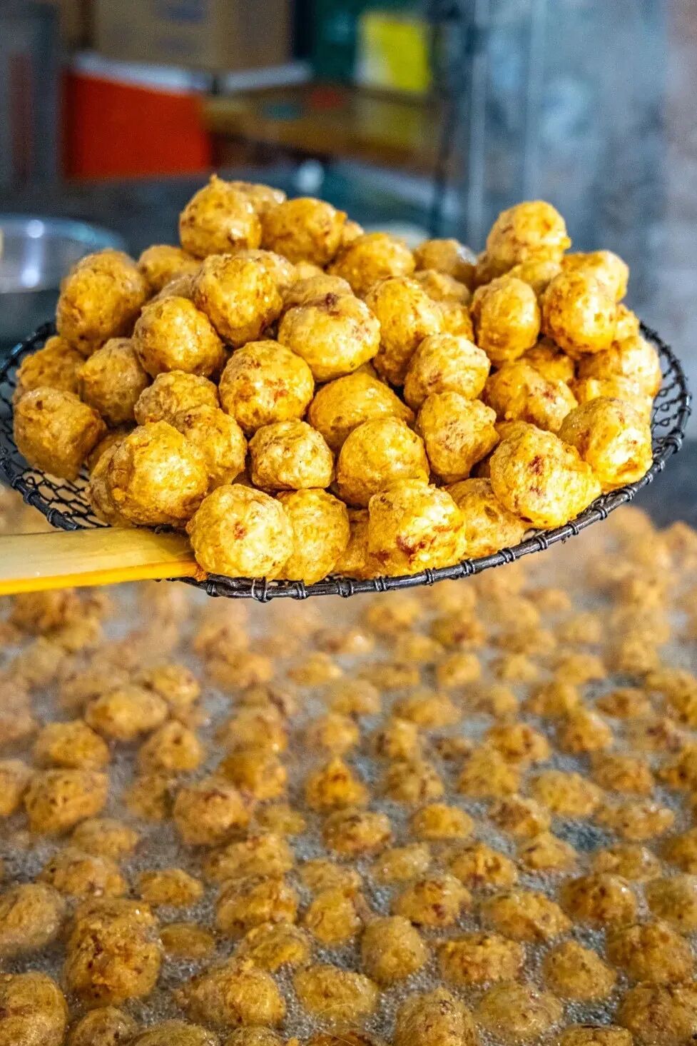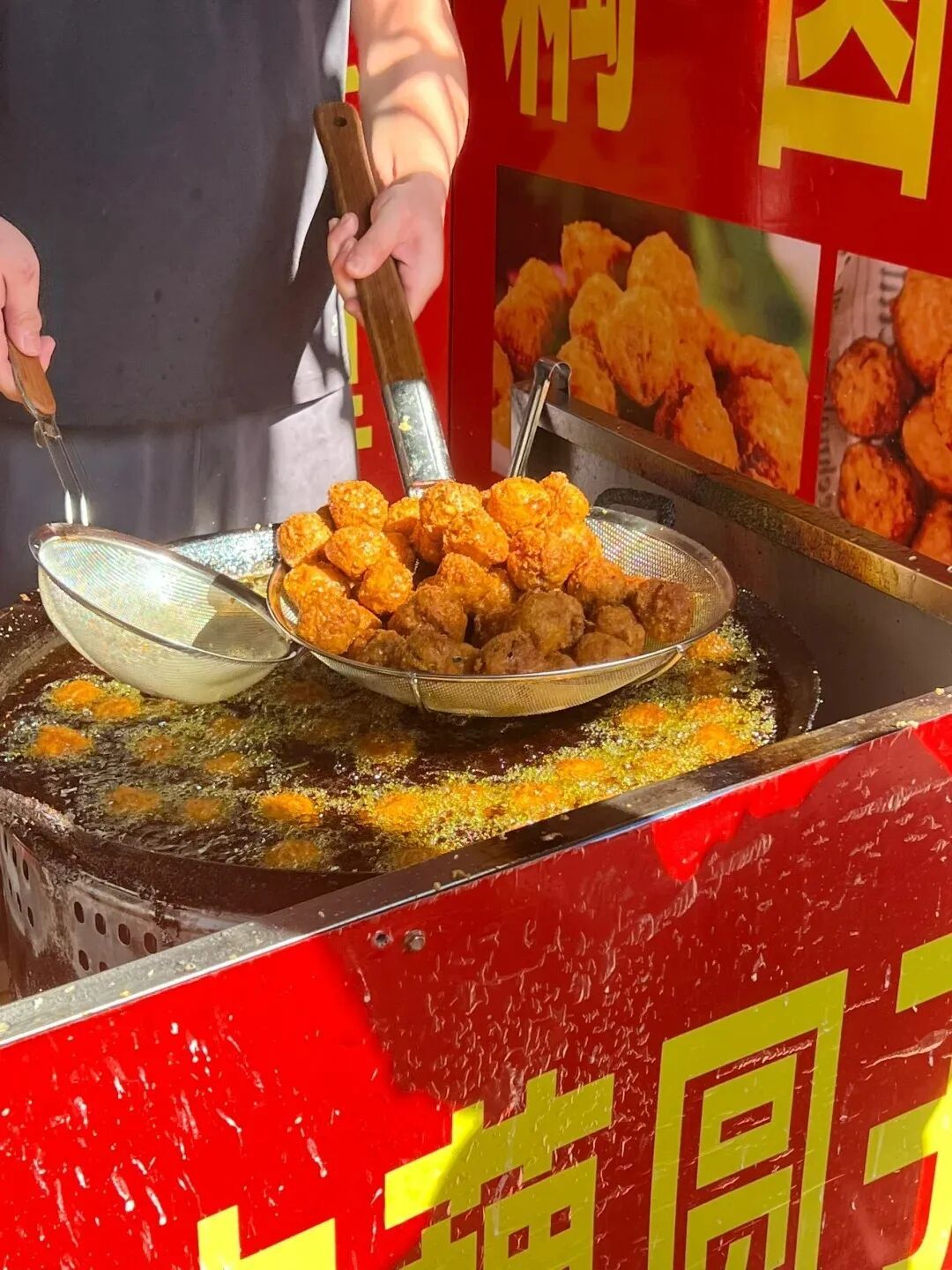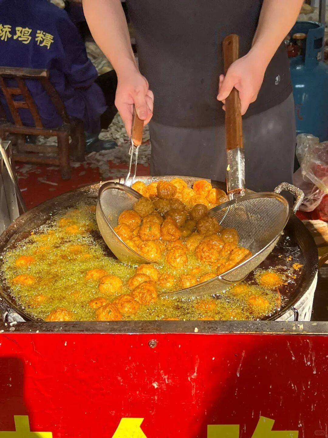 在天声街菜场,刘记黄金脆皮藕圆子的油锅冒起热气,老板把藕擦成泥,和肉末、淀粉拌匀,手速飞快团成小球,“滋啦”一声放进热油里。