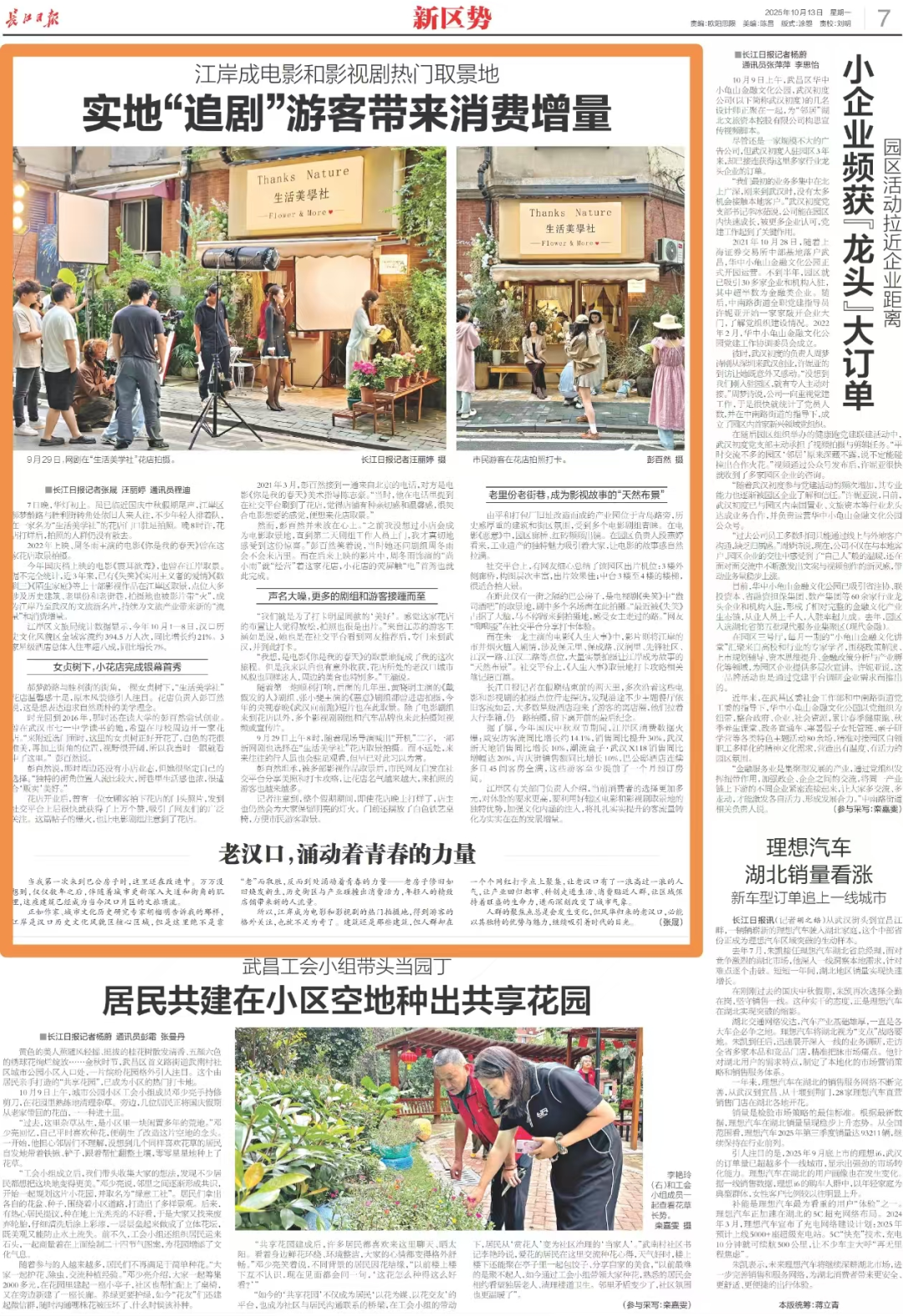 今年国庆档上映的电影《震耳欲聋》,也曾在江岸取景。据不完全统计,近3年来,已有《失笑》《实用主义者的爱情》《数到三》《陌生家庭》等上十部影视作品在江岸区取景,点位大多涉及历史建筑、老里份和老街巷,拍摄地也被影片带“火”,成为江岸乃至武汉的文旅新名片,持续为文旅产业带来新的“流量”和消费增量。