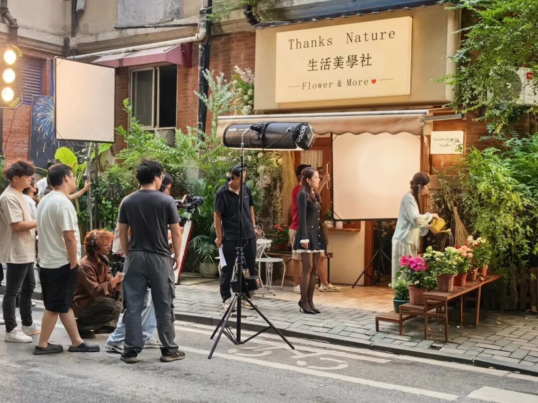 9月29日上午8时,随着现场导演喊出“开机”二字,一部新网剧也选择在“生活美学社”花店取景拍摄。而不远处,来来往往的行人虽也会驻足观看,但早已对此习以为常。