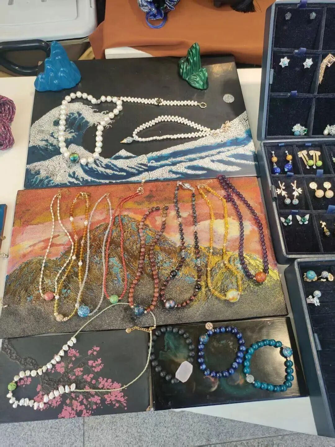 在朱钟宗的摊位上,首饰类价格大多在150元左右,受到女游客欢迎。大漆葫芦或漆画价格则定位于三四千元。这个假期,来自河北、河南的游客分别买下两幅漆画。