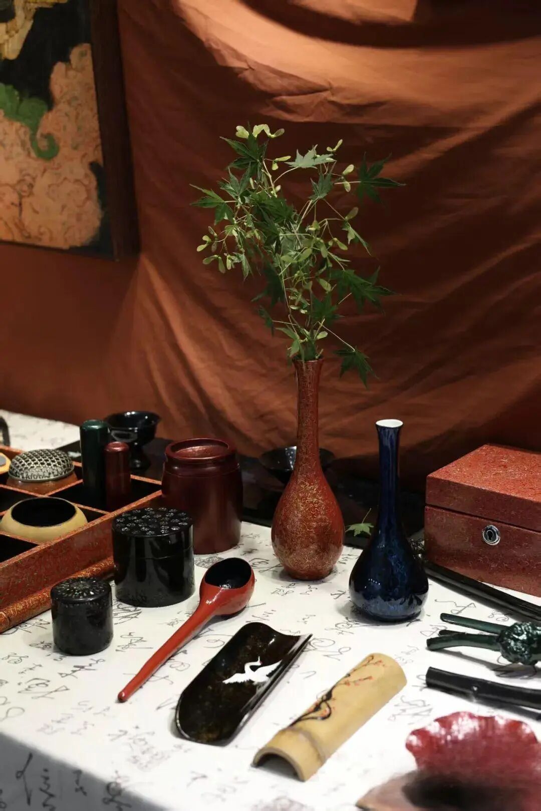 他带着一系列大漆作品来到市集