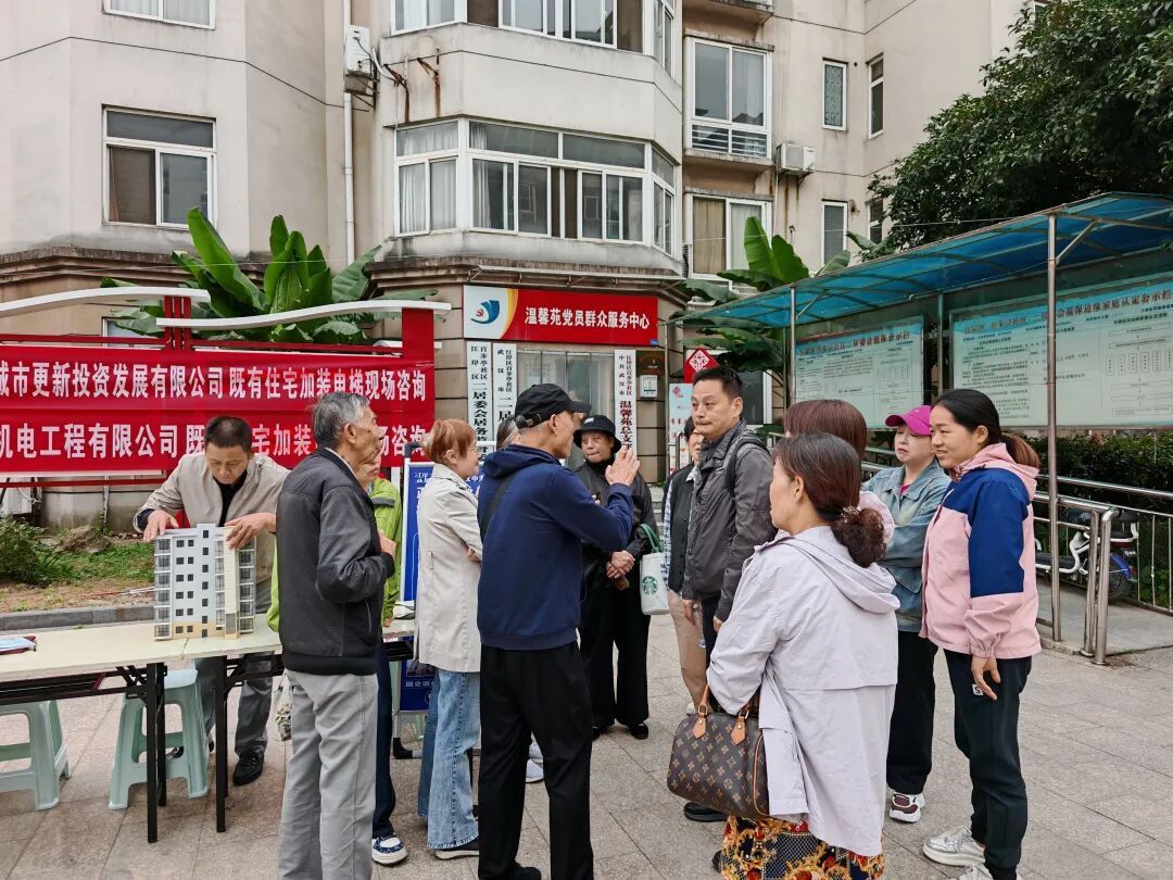 百步亭温馨苑老年居民多,“爬楼难”成了大家的共同烦恼。小区2018年至2024年已成功加装11部电梯,2025年以来又有12部新梯“在路上”!活动当天,居民们的咨询热情高涨。