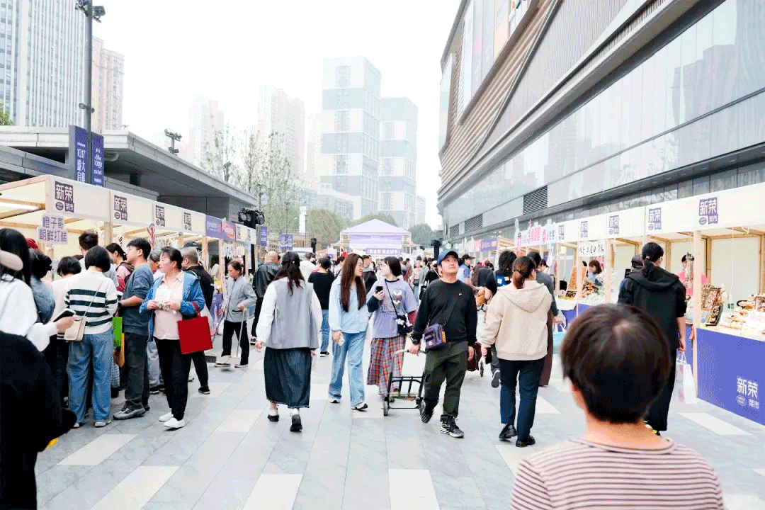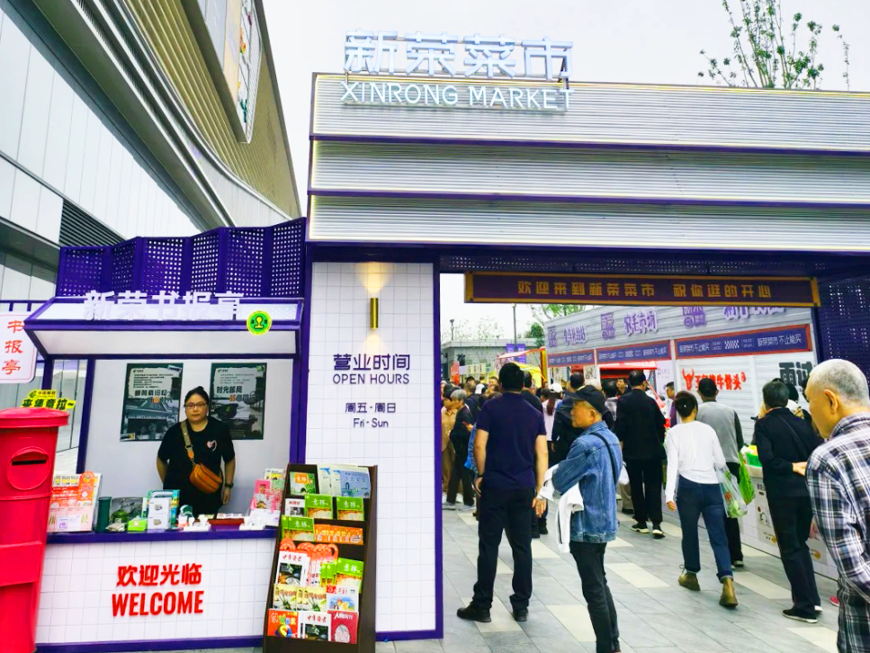 该市集灵感来源于原新荣客运站及农贸市场融合而成的“新荣大市场”,那片充满温情与烟火气的土地如今以全新形式延续其市井精神。项目将“农贸市场”概念创意升级,以赶集场景中的“菜篮子”为主元素,集结70余家品牌,还原真实菜市场景,打造一场可逛、可拍、可享的后湖精致烟火体验,让市民在创意空间中重温城市记忆,共鸣本地生活习惯。