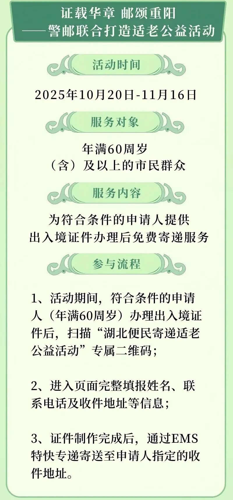 即可享受免费的证件寄递服务