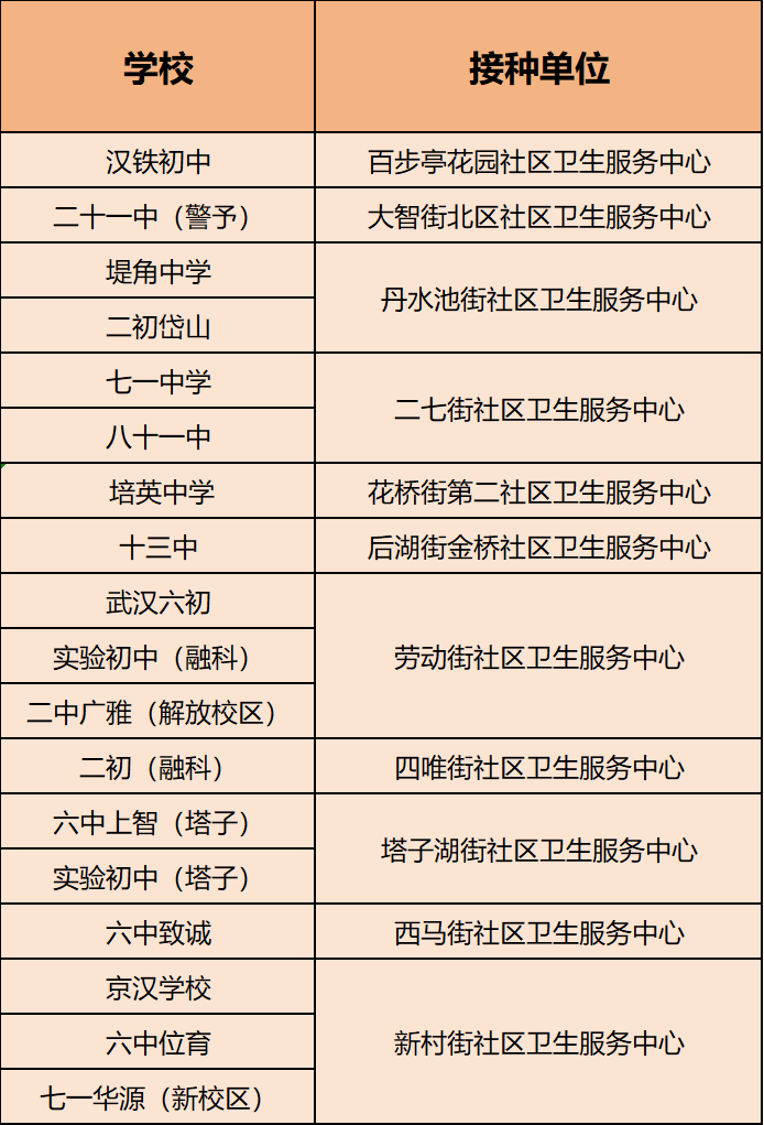 为方便大家,接种工作将按学校划分